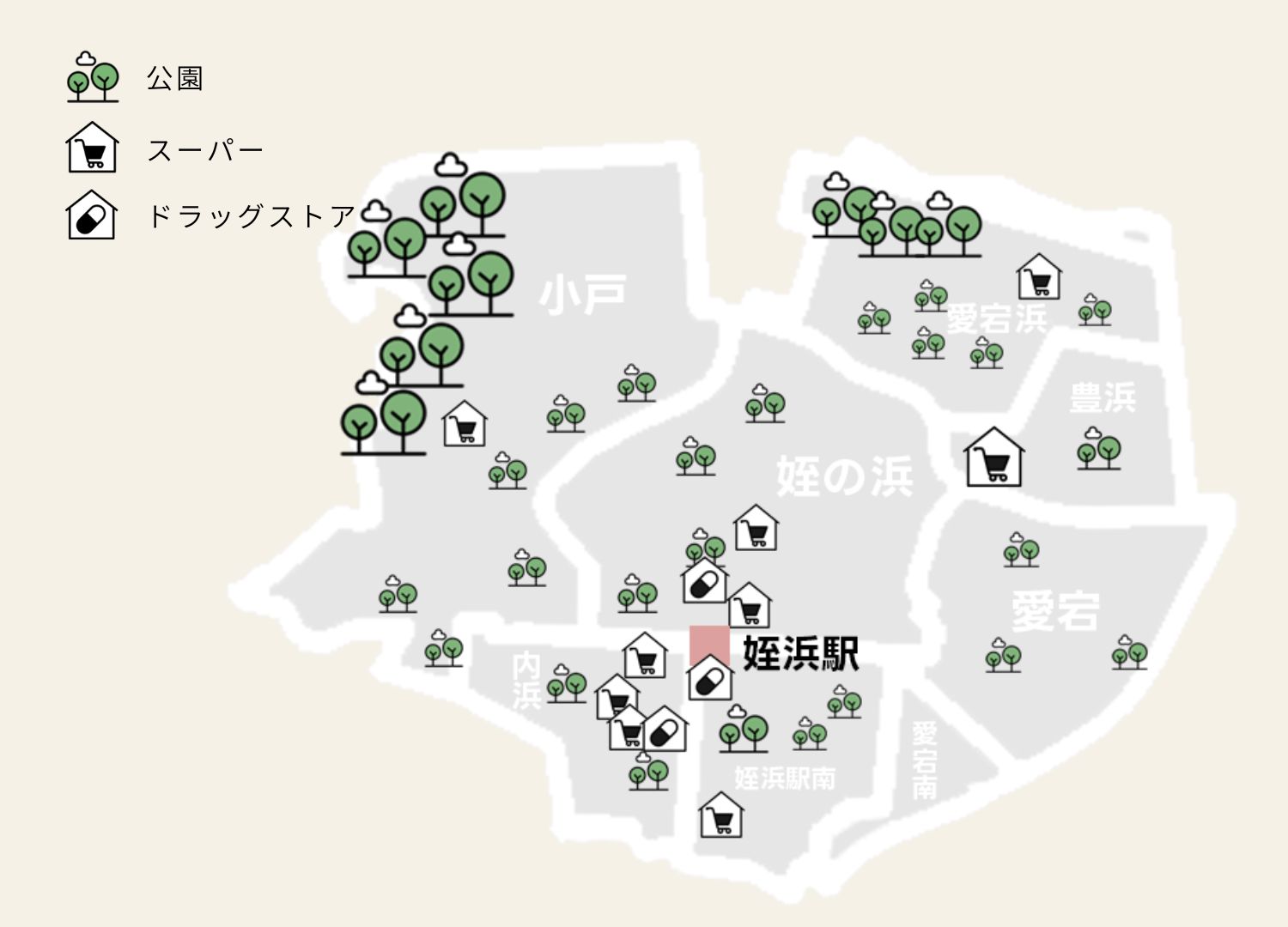 - スーパーやマリナタウンもあるので買い物や外食にも行きやすい◎