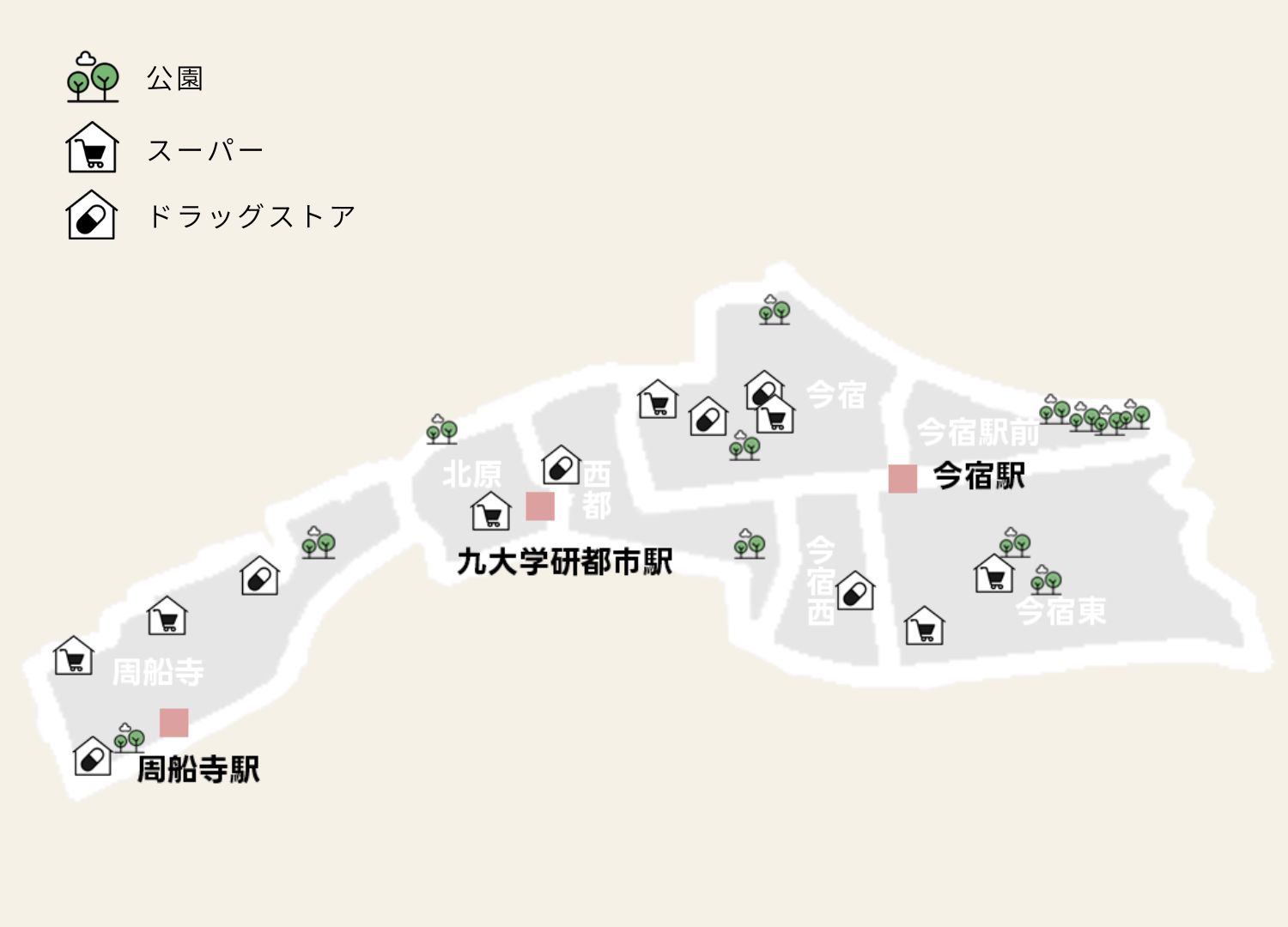 - 九州大学を中心に現在も都市開発が進んでおり、今後も更なる発展が期待できるエリアです。