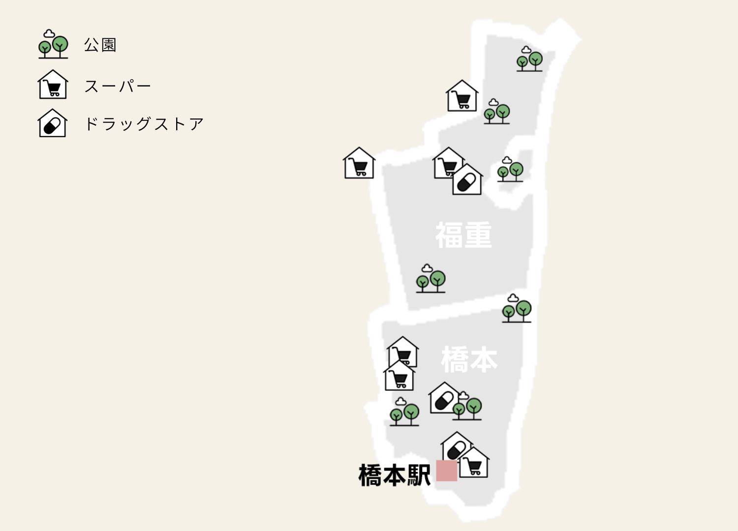 - 橋本駅目の前に木の葉モールがあり、買い物にとても便利。北側は畑も多くのどかさも感じられるエリアです。