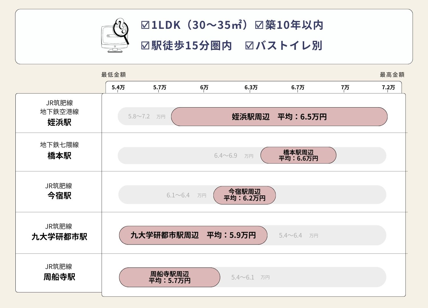 - 西区の中では天神から最も遠いので賃料相場が安め。